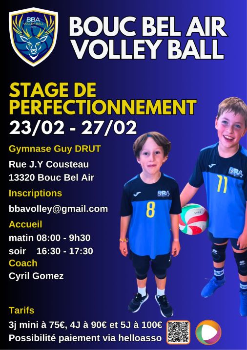 Stage de Volleyball à Bouc-Bel-Air : ce sera la deuxième semaine des vacances de février, du lundi au vendredi.